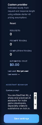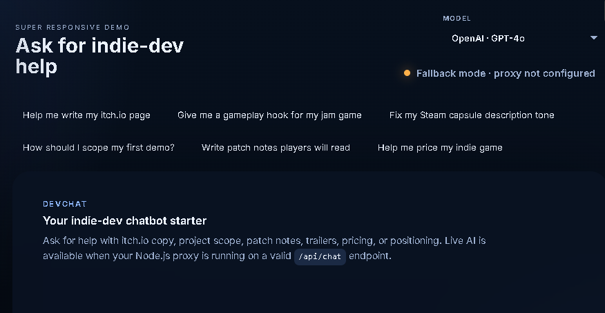 Premium AI chatbot starter kit for indie game developers