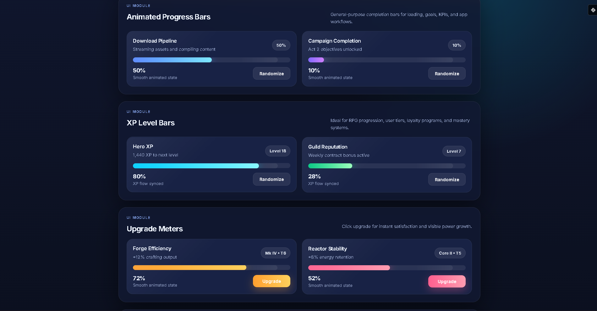 HTML5 Progress & Upgrade System UI – XP Bars, Idle Game Template